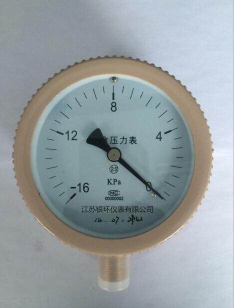 不銹鋼真空膜盒壓力表參照原膜盒壓力表的結構特點而研制的具有耐腐蝕作用的微壓表。應用于鍋爐通風和氣體管道等設備上,在耐腐要求較高的工藝流程中測量各種氣體介質的微壓和負壓。精確度等級:2.5