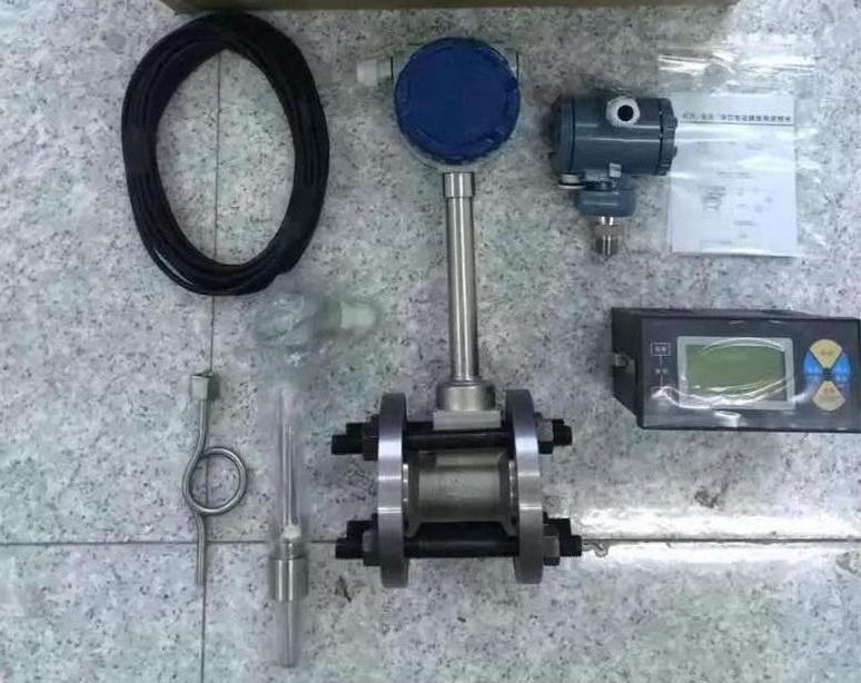 是由法蘭卡裝式流量傳感器和顯示儀表組成。法蘭卡裝式流量計將法蘭焊接在工藝管道上,然后用螺栓、螺母將儀表固定在兩個法蘭之間。安裝簡單便捷,成本低。本公司提供法蘭,不需另行購買安裝法蘭。流量計是速度式流量計的一種,它以卡門理論為基礎,采用壓電晶體檢測流體通過管道內三角柱時產生的漩渦頻率,從而測量出流體的流量。