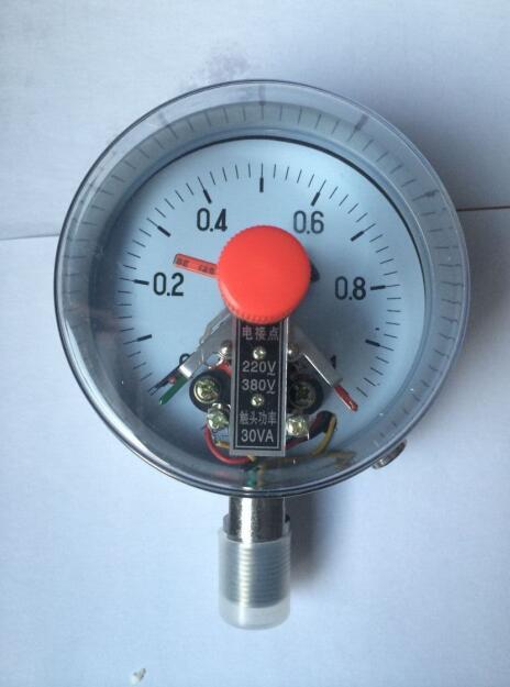 壓力表由測量系統、指示系統、磁助電接點裝置、外殼、調整裝置和接線盒(插頭座)等組成。一般電接點壓力表是用于測量對銅和銅合金起腐蝕作用的氣體、液體介質的正負壓力,不銹鋼電接點壓力表用于測量對不銹鋼不起腐蝕作用的氣體、液體介質的正負壓力并在壓力達到預定值時發出信號,接通控制電路,達到自動控制的報警的目的。