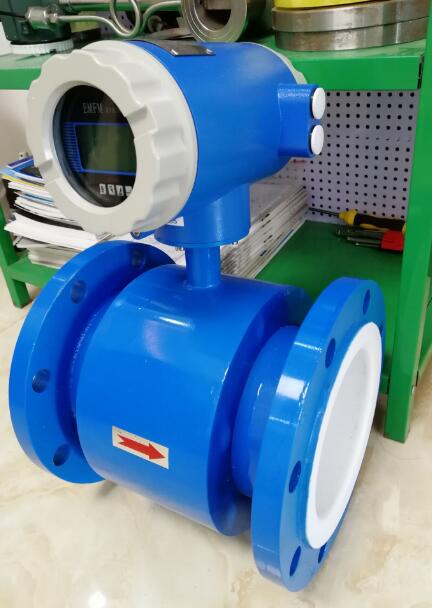 工業廢水流量計測量管是一內襯絕緣材料的非導磁合金短管。兩只電極沿管徑方向穿通管壁固定在測量管上。其電極頭與襯里內表面基本齊平。勵磁線圈由雙方波脈沖勵磁時,將在與測量管軸線垂直的方向上產生一磁通量密度的工作磁場。此時如果具有一定電導率的流體流經測量管。將切割磁力線感應出電動勢。電動勢正比于磁通量密度,測量管內徑與平均流速乘積。電動勢(流量信號)由電極檢出并通過電纜送到轉換器。轉化器將流量信號放大處理后,可顯示流體流量,并能輸出脈沖,模擬電流等信號,用于流量的控制和調節。