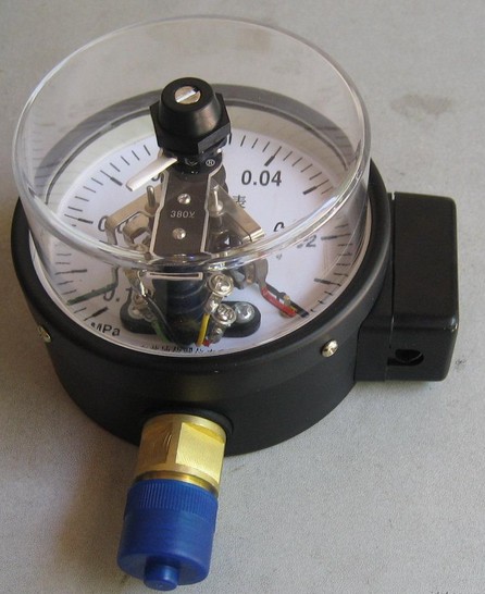 電接點壓力表由測量系統、指示系統、磁助電接點裝置、外殼、調整裝置和接線盒(插頭座)等組成。一般電接點壓力表是用于測量對銅和銅合金不起腐蝕作用的氣體、液體介質的正負壓力,不銹鋼電接點壓力表用于測量對不銹鋼不起腐蝕作用的氣體、液體介質的正負壓力并在壓力達到預定值時發出信號,接通控制電路,達到自動控制的報警的目的。