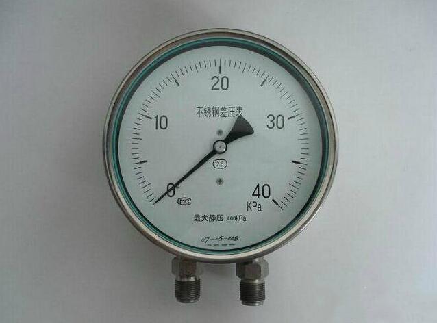 差壓表的工作原理:基于感壓元件采用兩只具有相同剛度的波紋管,因此在同一被測(cè)介質(zhì)下迫使其產(chǎn)生相同的集中力分別作用于活動(dòng)支架上,由于彈簧片兩側(cè)在等力矩作用下不產(chǎn)生擾度,故支架還處于原始位置,這樣齒輪傳動(dòng)機(jī)構(gòu)也不動(dòng)作,使指針仍指在零位。