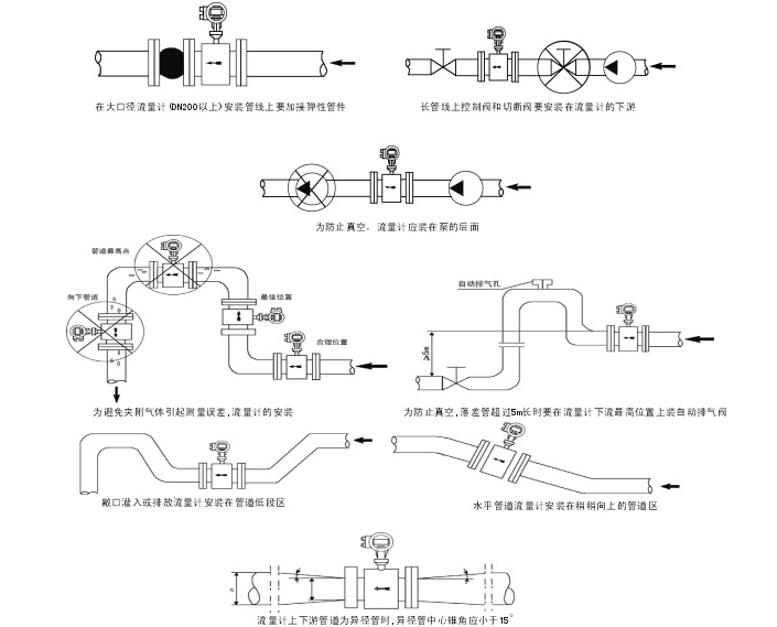 DN10/DN15/DN20/DN25/DN32/DN40/DN50/DN65/DN80/DN100電磁流量計安裝要求: