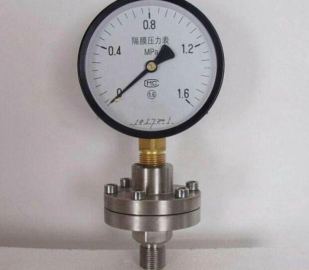 隔膜壓力表適用于測量強腐蝕、高溫、高粘度、易結晶、易凝固、有固體浮游物的介質壓力以及必須避免測量介質直接進入通用型壓力儀表和防止沉淀物積聚且易清洗的場合,應必須采用由隔膜隔離器與通用型壓力儀表組成一個系統的隔膜表。