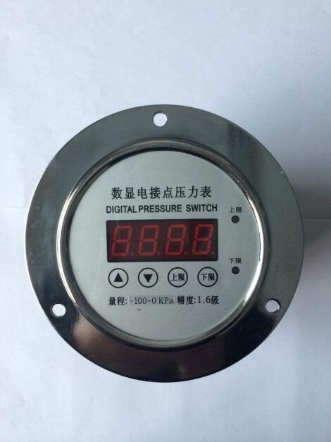 數顯電接點壓力表是利用指針式壓力表的測量原理,配用擴散硅傳感器/霍爾傳感器作為測壓元件、單片機控制的在線測量儀表。它從根本上克服了指針式電接點壓力表、壓力表精度低、視值誤差大、可靠性差、壓力控制點少、損壞率高等諸多缺點,是指針式電接點壓力表、指針式壓力表的換代產品。