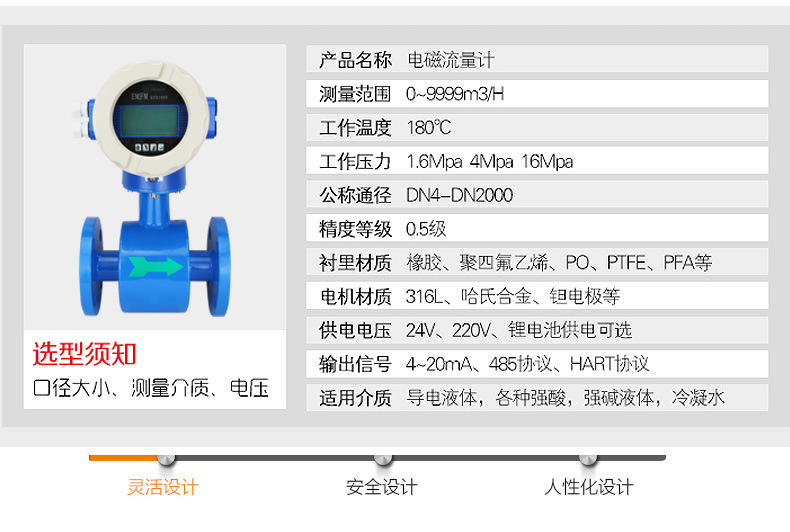 電磁流量計廠家口徑及流量的選擇