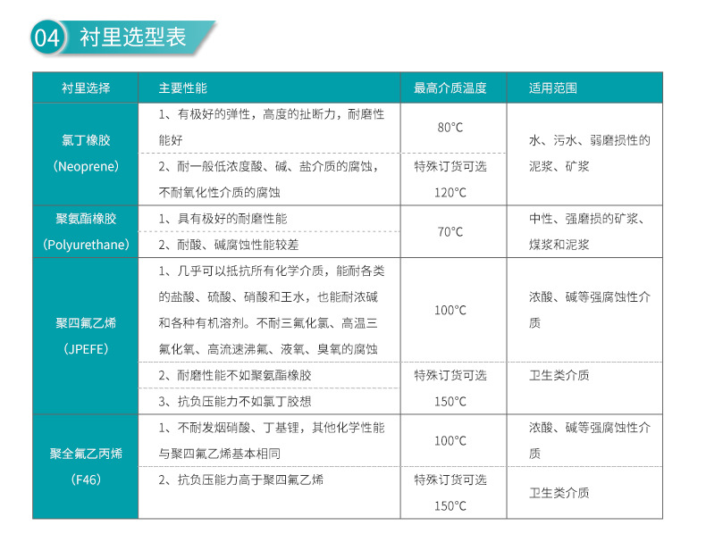 <60°C,中性、強磨損的礦漿,煤漿、泥漿。