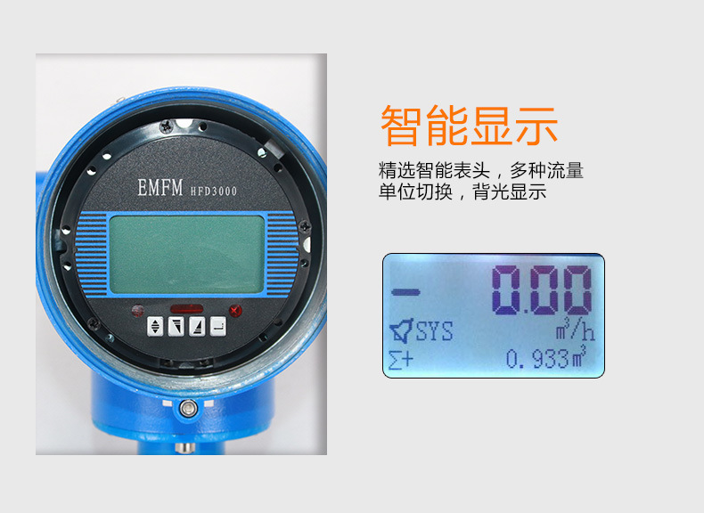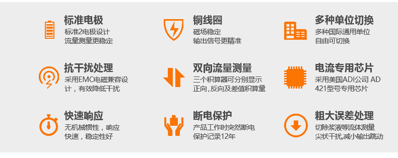 特別設(shè)計了帶背光寬溫的中文液晶顯示器,功能齊全實用、顯示直觀、操作使用方便,可以減少其他電磁流量計英文菜單所帶來的不便。另外我們設(shè)計4-6多電極結(jié)構(gòu),進一步保證了測量精度并且任何時候無需接地環(huán),減輕了儀表體積和安裝維護的麻煩。