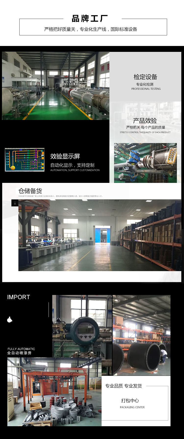流量計是高精度、高可靠性和使用壽命長的流量儀表,所以在設(shè)計產(chǎn)品結(jié)構(gòu)、選材、制定工藝、裝配和出廠測試等過程中每一個環(huán)節(jié)我們都非常細致講究,我們還自行設(shè)計了一套國內(nèi)目前先進的,專用于電磁流量計的設(shè)備和流量實流標定裝置,從而在軟件和硬件上都能切實保證產(chǎn)品長期的高質(zhì)量。
