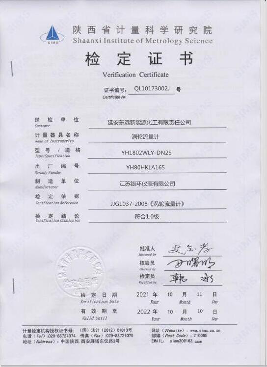 渦輪流量計證書