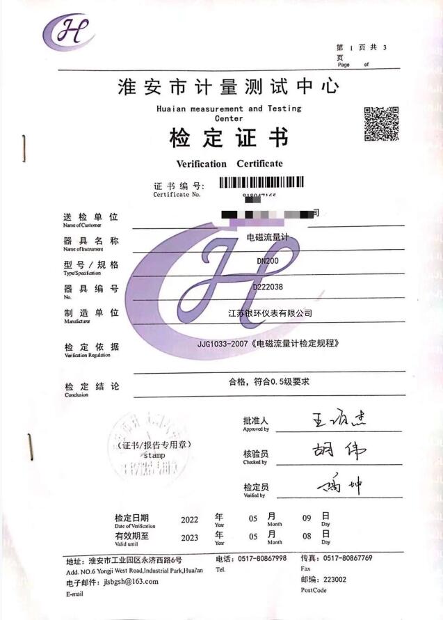 電磁流量計證書