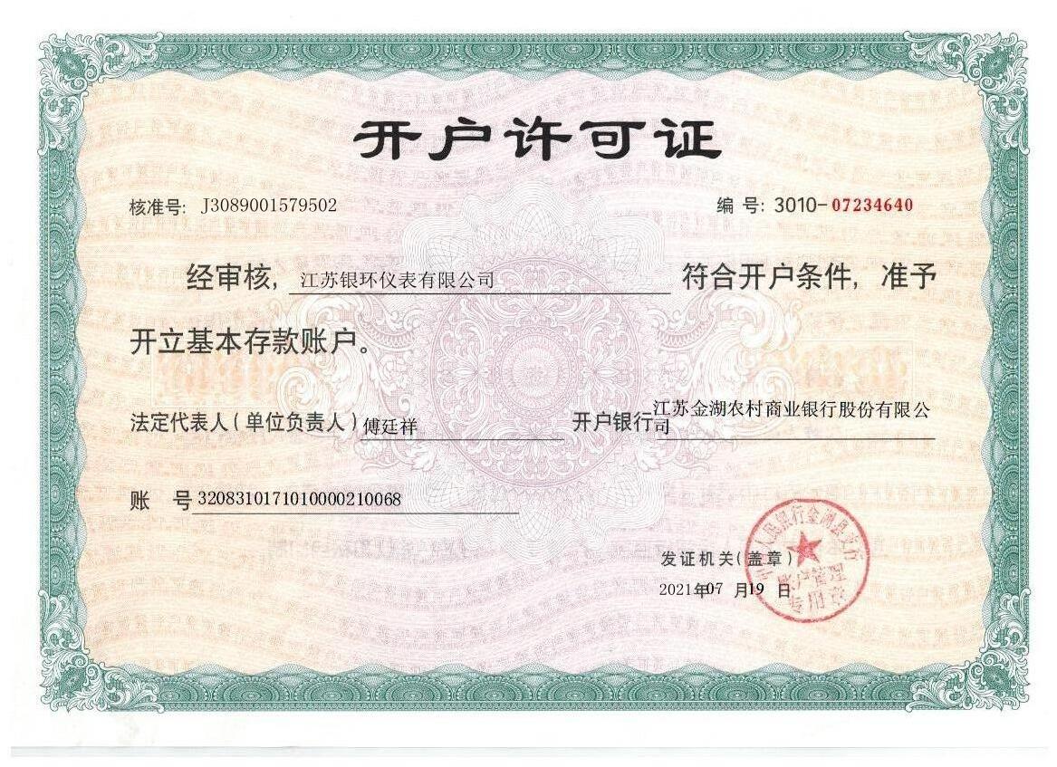 單   位:江蘇銀環儀表有限公司