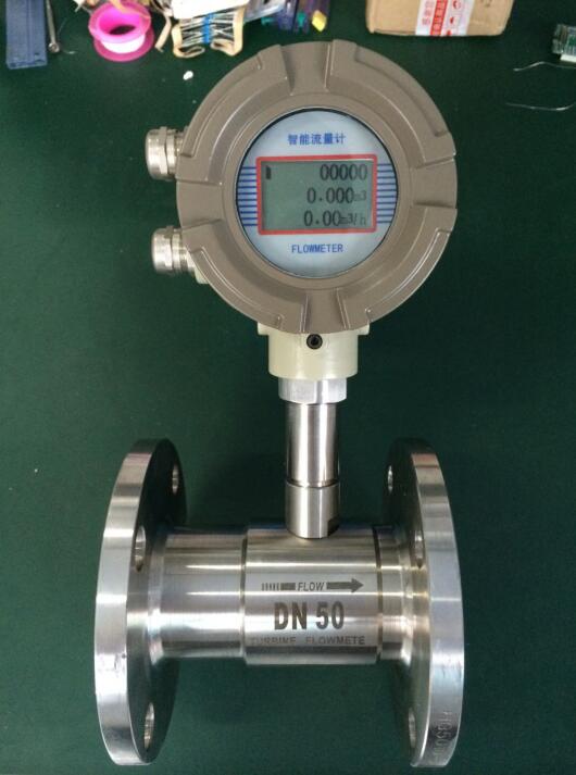 渦輪流量計(jì)的工作原理是通過在管道中安裝一個(gè)渦輪,兩邊由軸承加以支撐。在流體經(jīng)過管道時(shí),沖擊渦輪的葉片,沖擊力對(duì)渦輪產(chǎn)生驅(qū)動(dòng)力矩,使渦輪克服磨擦力矩產(chǎn)生旋轉(zhuǎn)。在一定的流量范圍內(nèi),對(duì)一定的流體介質(zhì)粘度,渦輪的旋轉(zhuǎn)角速度與流體流速成正比。由此,流體流速可通過渦輪的旋轉(zhuǎn)角速度得到,以此便能通過計(jì)算得到通過管道的流體流量。